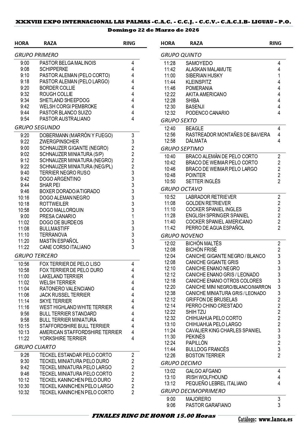 ➡️El Sr. Walsh juzgará las siguientes razas del grupo 2: